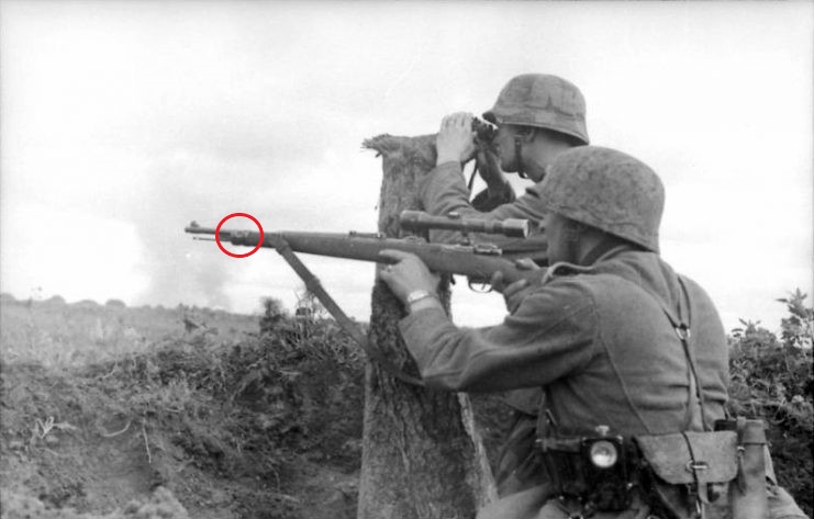 Nice genuine WWII German front band for the Mauser 98K rifle. Good condition.