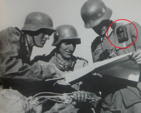 Lampe individuelle allemande, d'origine Seconde Guerre mondiale, du modèle standard de la Wehrmacht destiné à être porté sur la poitrine grâce à deux pattes de cuir.