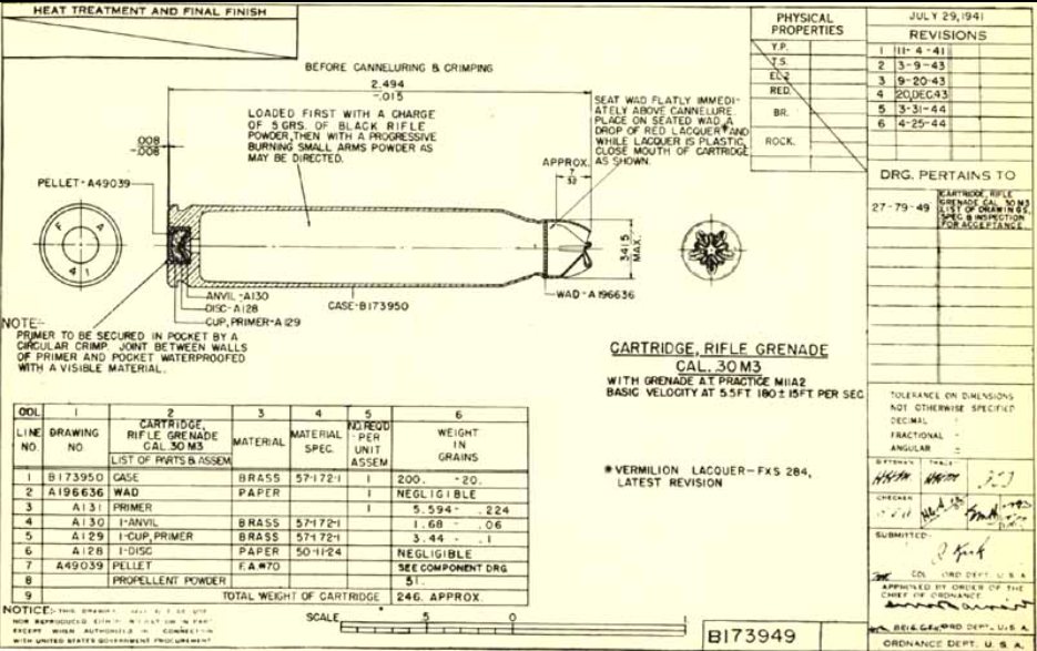 Rare boîte en carton, d'origine Seconde Guerre mondiale, destinée à contenir onze cartouches de calibre .30 pour le tir de grenades à fusil.