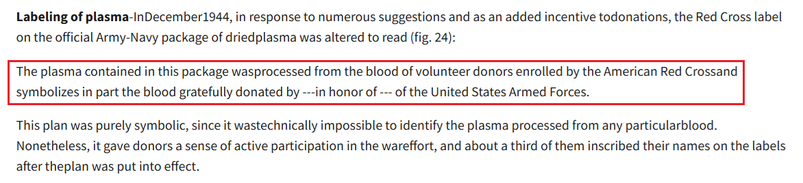 Ce modèle, introduit en décembre 1944, permettait aux donneurs de plasma d'inscrire leur nom afin de renforcer le sentiment de participation à l'effort de guerre.