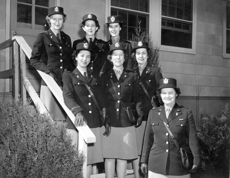 Superbe casquette de WAC en laine pour officier, d'origine Deuxième Guerre, de teinte Dark OD N° 51, portée avec le tenue de sortie hiver. Fabrication Plaza Sport Shop, à Washington.