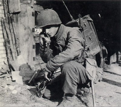 Radio BC-1000-B (SCR-300), d'origine Deuxième Guerre. A partir de mars 1943, cette radio remplacera le SCR-511 et les SCR-194 et 195. Elle est employée, entre autres, pour l'exploitation du réseau radio du bataillon d'infanterie et le réglage d'artillerie. Sa portée est de 5 à 8 km avec l'antenne longue AN-131 et de 4 km avec l'antenne fouet AN-130. Caisses avec plaques de renfort typique 1er modèle Deuxième Guerre.
