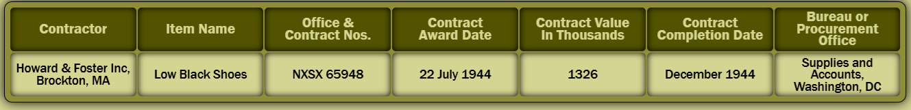 Fabriquées par Howard & Foster, Inc. à Brockton (Massachusetts). Contrat NXsx 65948 du 22 juillet 1944.